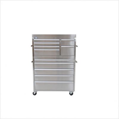 THL-RTC4111 Features: -Tool chest. -High quality non-magnetic stainless steel. -2,000 lbs weight capacity. -Six split-top drawers, 5 full-length drawers. -Heavy duty ball bearing slides - each pair rated at 160 lbs. -4'' x 2'' heavy duty casters - rated 550 lbs. each. -Full extended drawers. -Two heavy-duty hydraulic lifts for top lid for each one-touch opening. -Center locks for top and bottom chest. -Assembly required. -One year warranty. -Dimensions: 56'' - 60'' H x 43'' - 47.5'' W x 18'' D.