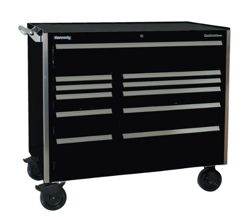 Kennedy Benchmark Series 11-Drawer Roller Cabinet (46003) Tubular high-security lock and key set. Ball-bearing slides come on all drawers. Heavy-duty, non-slip drawer liner in every drawer, top mat Chrome-plated steel side handle 6 x 2 in. casters. Available in Black (4603BK) Blue (4603BL) Red (4603R) Burgundy (4603BUR)